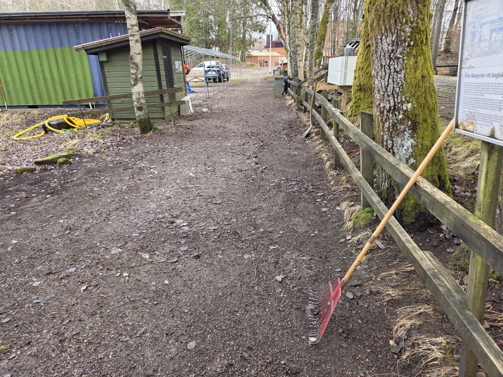 Krattning av grusgången (Gamla gamla göteborgsvägen) RS |