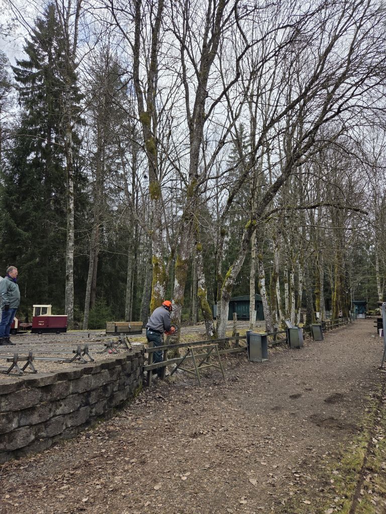 Fällning av träd som lutar mot tälten RS |